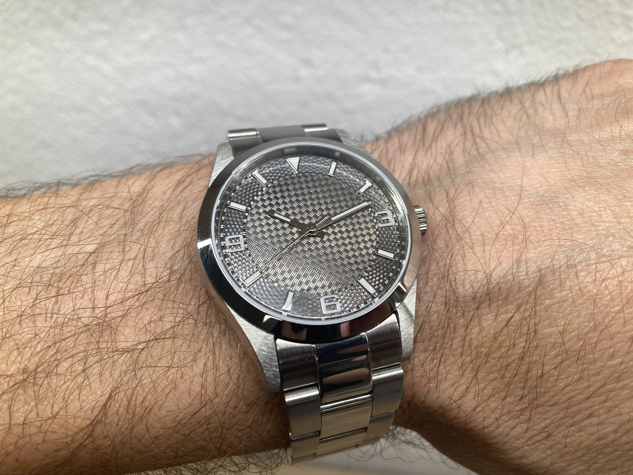 For years I have worn a Rolex Explorer as my “daily driver” watch. I planned to replace that watch with one that I built as soon as I had the right tools. Well that day is TODAY! A true guilloche dial that is black rhodium plated over a 100% silver dial made on the Elara CNC, Plant Straight-line Engine and Lindow Rose Engine.